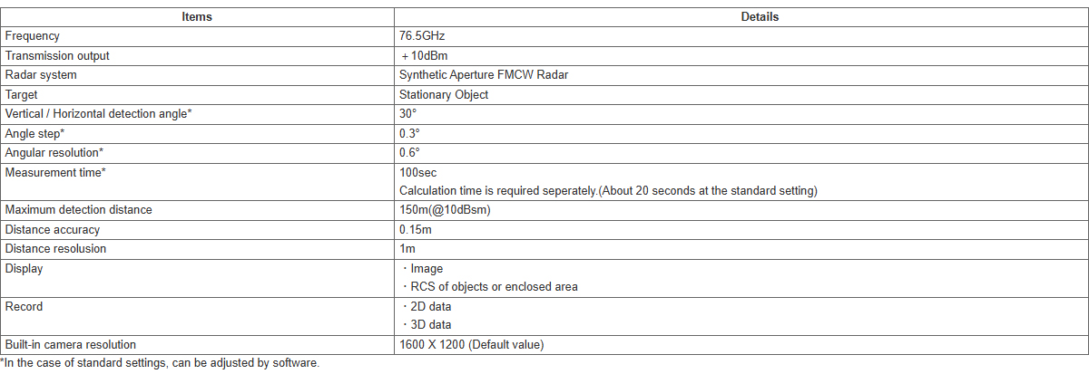 We placed a radio absorber 4m away from the synthetic aperture radar and measured the peak RCS.