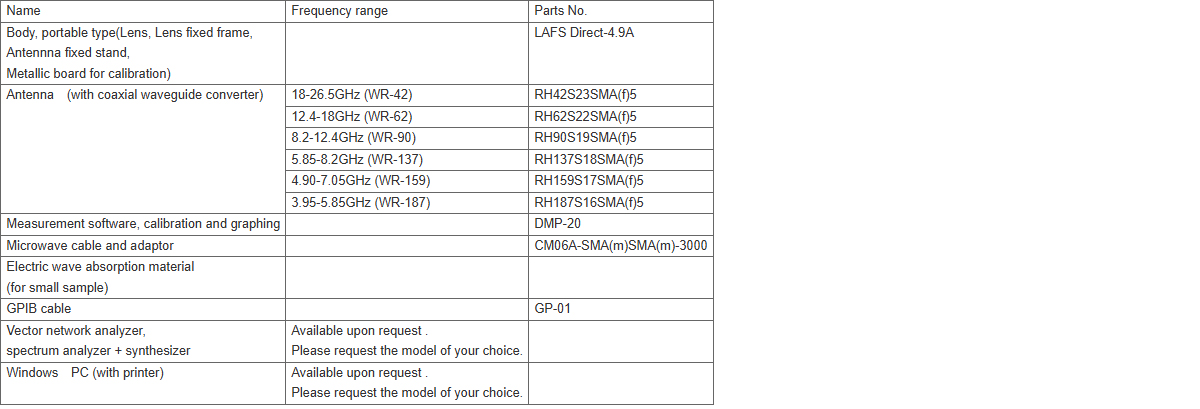 Unlike coaxial or waveguide type, errors by air gap do not occur because the sample is not capsulated in the fixture. Despite its compact dimensions, your sample can be measured with plane wave because the lenses are attached to the antennas, providing high measurement accuracy. Samples can be smaller than conventional systems because they can be placed in the vicinity of the antennas.
